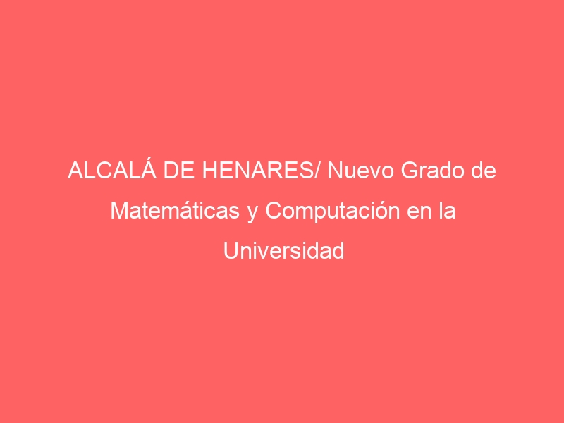 ALCALÁ DE HENARES/ Nuevo Grado de Matemáticas y Computación en la Universidad