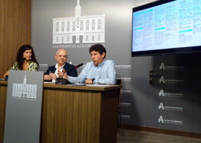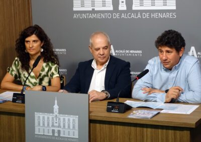 El tercer teniente de alcalde, Gustavo Severien, el concejal del Distrito I, Vicente Pérez, y la concejala de Participación Ciudadana y Distritos, Esther de Andrés, han presentado esta mañana la programación de las Fiestas de los Santos Niños que busca acercar la figura de los patronos de la ciudad a los alcalaínos. “Cada 6 de agosto recordamos desde hace siglos uno de esos hechos que, por su trascendencia, han marcado la historia de nuestra ciudad y que está arraigado en el sentimiento complutense”, ha indicado Gustavo Severien.