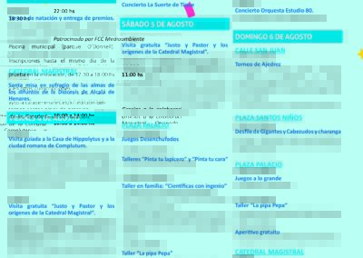 Para ello, una de las principales novedades de estas Fiestas serán unas visitas gratuitas en las que se profundizará en el origen de nuestra Magistral y en la historia de los Santos Niños. La visita está organizada por la Concejalía de Turismo gracias a la colaboración de la Catedral Magistral, el Obispado Complutense y la Asociación Diocesana de los Santos Niños Justo y Pastor.