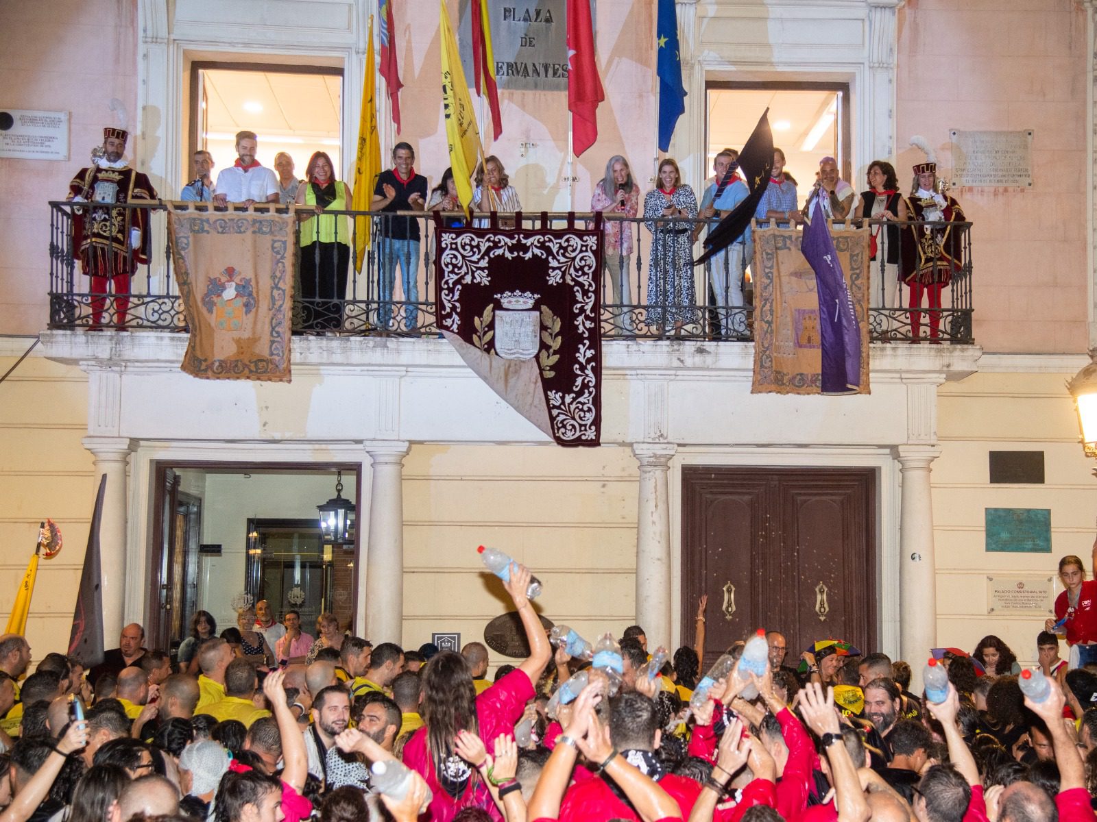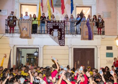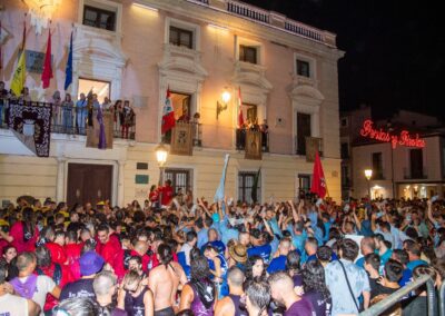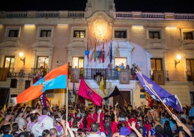 Posteriormente, las peñas festivas han tomado el protagonismo colocando su estandarte en el balcón del Ayuntamiento, donde permanecerá hasta el próximo domingo día 3 de septiembre, cuando se procederá a su retirada al finalizar el desfile de carrozas.