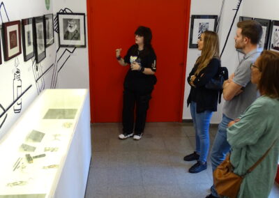 Se trata de la primera exposición de esta joven ilustradora de 23 años, de Alcalá de Henares, en la que presenta trabajos de grabado calcográfico, serigrafía, litografía, así como trabajos de dibujo digital. Su imaginario está poblado de animales que llenan el espacio de Cómic e Ilustración. Su interés es acercar estas técnicas gráficas clásicas a todo el público de la ciudad, para que se puedan conocer y valorar, ya que son procesos tradicionales de grabado que no son tan comunes de encontrar en exposiciones.