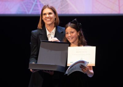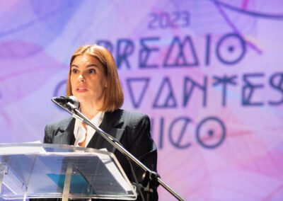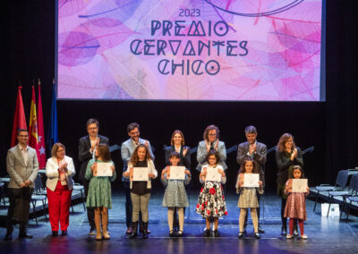 Se ha dado paso seguidamente al bloque de reconocimientos especiales de esta edición, que ha empezado por la distinción a la citada María Fernanda Heredia Pacheco, como escritora iberoamericana. Han recibido su placa conmemorativa después dos escolares, Paula Jabardo Rol, del CEIP Dulcinea; y Alejandra Martín Moreno-Fernández, del CEIP Ernest Hemingway. También se ha reconocido a la maestra Cervantes Chico 2023, que ha sido María del Val García López; y para la madre de esta edición, Teresa González Rodríguez, del Colegio Calasanz.