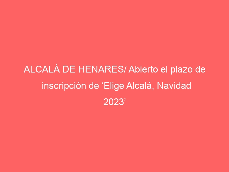 ALCALÁ DE HENARES/ Abierto el plazo de inscripción de ‘Elige Alcalá, Navidad 2023’