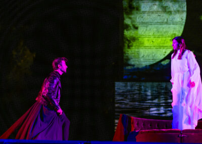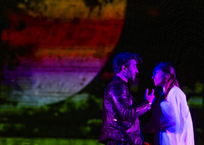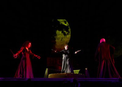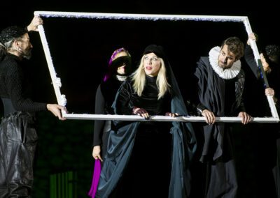 La propuesta escénica, que mezcla tradición y tecnología, tiene una base conceptual que se apoya de manera especial en las proyecciones de ‘mapping’ y en el aprovechamiento del espacio histórico de la huerta para ambientar la acción y subrayar los diálogos.