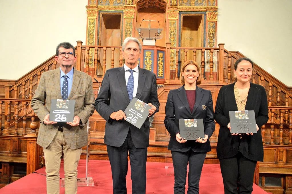 El Consorcio que conforman el Ayuntamiento, la Universidad de Alcalá y la Comunidad de Madrid ha editado un libro que recoge las actuaciones de rehabilitación que ha desarrollado a lo largo de su trayectoria con motivo de la conmemoración del 25 aniversario de la declaración de Alcalá como Ciudad Patrimonio de la Humanidad. La presentación de este libro ha tenido lugar este jueves 30 de noviembre, a las 17 horas, en el Paraninfo de la Universidad de Alcalá, con la presencia de la alcaldesa Judith Piquet, el rector José Vicente Saz, el director general de Patrimonio Bartolomé González y.