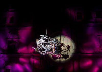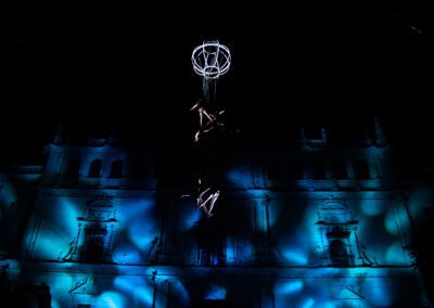 Para cerrar la jornada la calle Libreros y la Plaza de San Diego fueron el decorado del pasacalles y espectáculo de teatro aéreo ‘Universo Atlantis’, a cargo de ‘Creadores de Ilusiones y ‘Grupo Puja’ junto a la fachada de la Universidad, un espectáculo de acrobacias, música y luces muy aplaudido por el público presente.