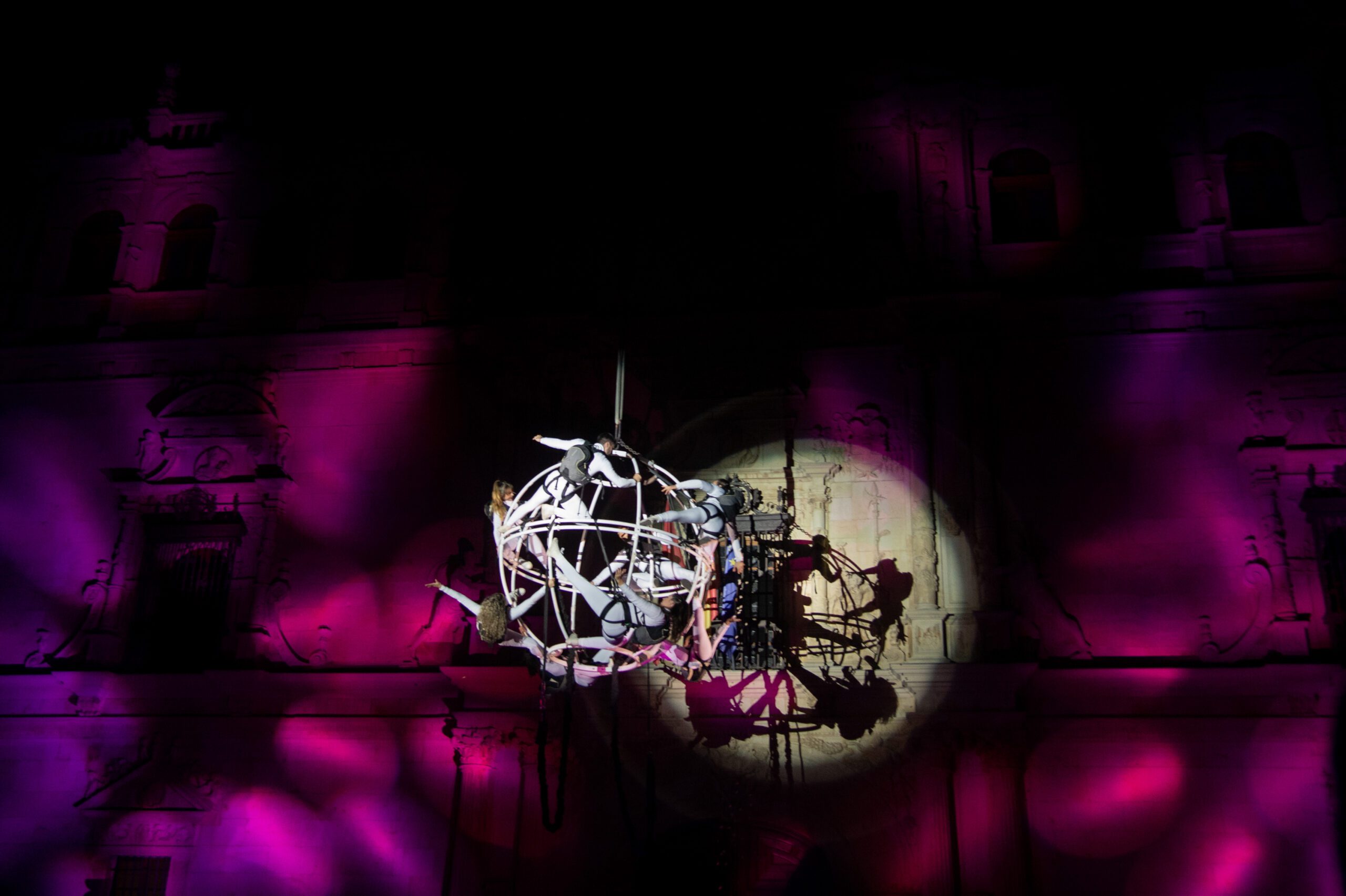 Para cerrar la jornada la calle Libreros y la Plaza de San Diego fueron el decorado del pasacalles y espectáculo de teatro aéreo ‘Universo Atlantis’, a cargo de ‘Creadores de Ilusiones y ‘Grupo Puja’ junto a la fachada de la Universidad, un espectáculo de acrobacias, música y luces muy aplaudido por el público presente.