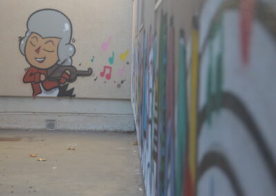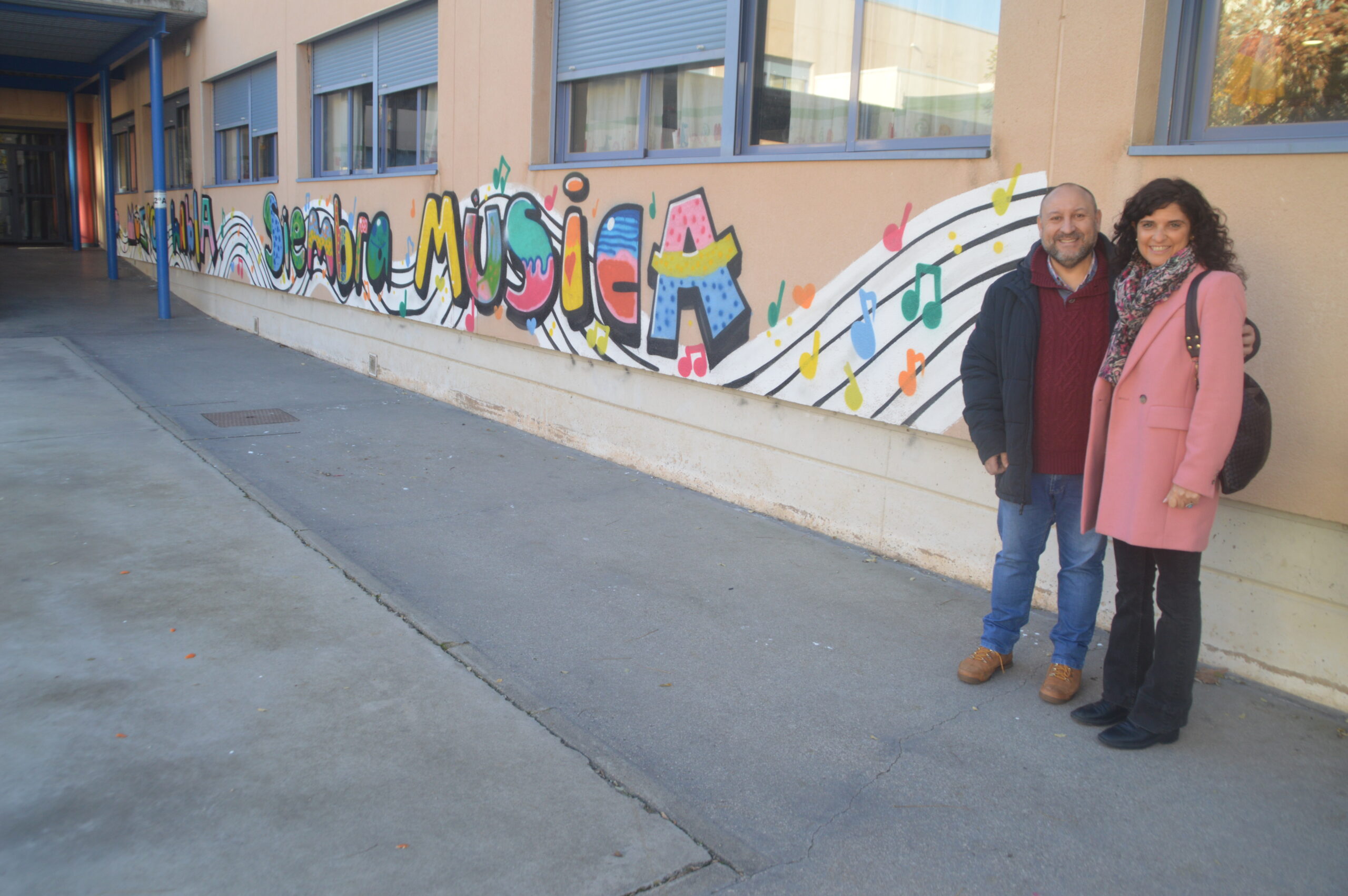 Las concejalas de Educación, Lola López, y de Participación Ciudadana, Esther de Andrés, han visitado esta semana el mural ‘Cuando las palabras fallan habla la música. Siembra música’ en el colegio Mozart, dentro de la iniciativa ‘Deja tu huella en el cole’, que ha contado con la colaboración del artista Antonio Hernández Gamo ‘Toño’. En la zona izquierda del mural, aparece Mozart tocando el violín, del que salen notas y una partitura que sirven de unión para el muro completo.