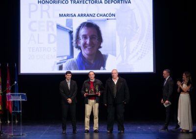 El premio honorífico a la trayectoria deportiva ha recaído en Marisa Arranz Chacón a título póstumo, jugadora del mítico Avón de baloncesto femenino, entrenadora de cantera posteriormente e impulsora de proyectos solidarios en África.