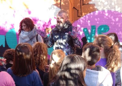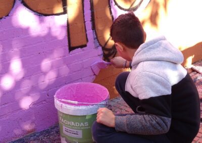 El CEIP Cervantes, ubicado en la calle Giner de los Ríos de Alcalá de Henares, alberga, en una de sus paredes exteriores, un nuevo mural del Proyecto “Deja tu huella en el cole”, obra del artista Antonio Hernández Gamo, conocido artísticamente como “Dulze Toño”.