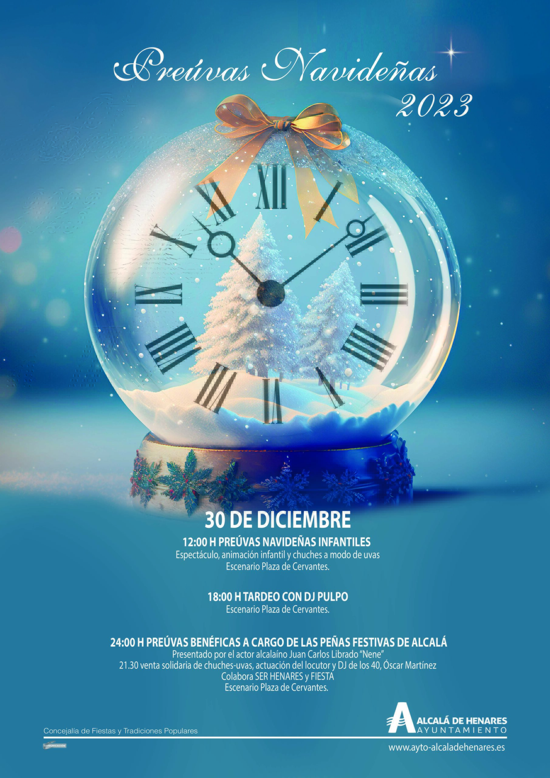 Ya por la tarde, y de la mano de las Peñas Festivas de la ciudad, se han organizado las “Preúvas” a las 24:00 horas, para que todos los vecinos y vecinas puedan acudir a la Plaza de Cervantes a despedir el año 2023 de una forma solidaria.