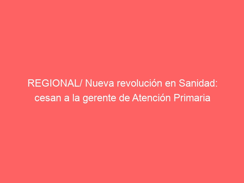 REGIONAL/ Nueva revolución en Sanidad: cesan a la gerente de Atención Primaria
