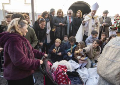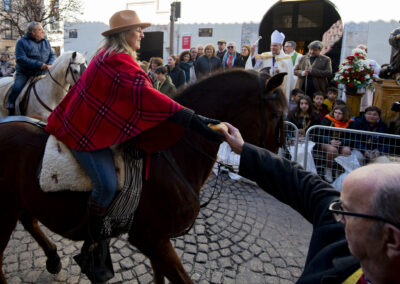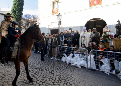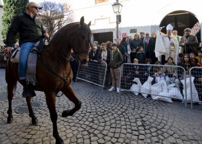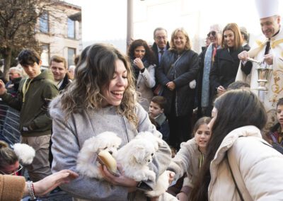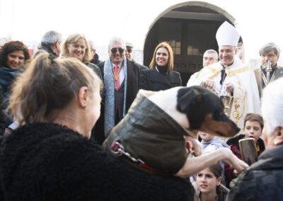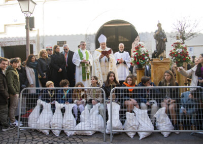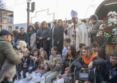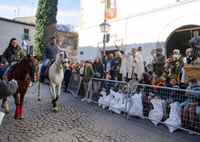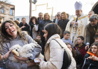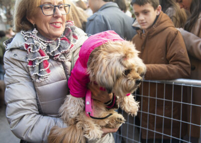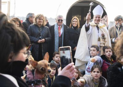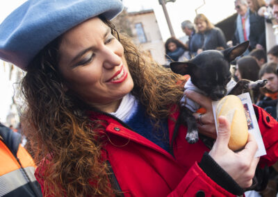 De la mano de la Hermandad de San Antonio Abad y con la presencia de la alcaldesa Judith Piquet, de los concejales del equipo de gobierno, Isabel Ruiz, Antonio Saldaña, Esther de Andrés, Teófilo Lozano y Pilar Cruz, y otros miembros de la corporación municipal, los vecinos de Alcalá de Henares han abarrotado la Calle Mayor, para ver cómo frente al Hospital de Antezana, el obispo de Alcalá, Antonio Prieto Lucena, bendecía a todas las mascotas, y recibían de manos de la Hermandad, el tradicional “Panecillo del Santo”.