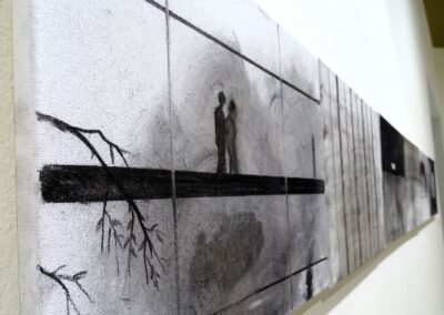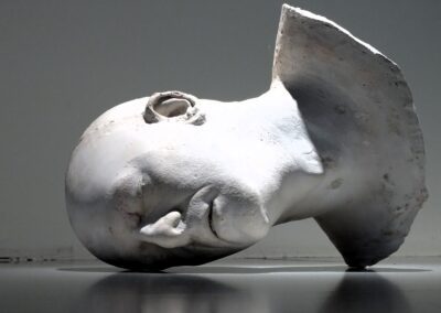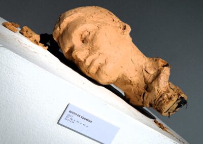 Los trabajos que forman parte de esta exposición se presentan en diferentes formatos y soportes, encontrándonos con una serie de carboncillo y pintura metálica sobre papel, que bajo el título común “Dentro hay…” simbolizan un complejo y ambiguo universo personal; un par de obras de la serie “Le noir”, en carboncillo sobre lienzo, así como magníficas esculturas en forma de bustos.