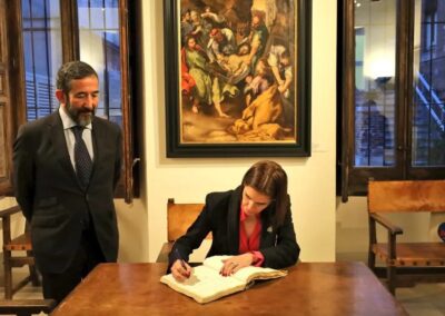 Previamente, la alcaldesa firmó en el libro de honor de esta histórica institución.