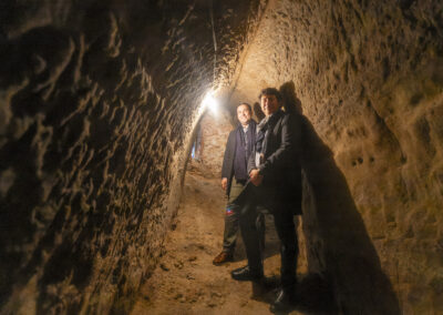 Durante la visita, también se ha podido conocer de primera mano la infraestructura del viaje del agua de Gilitos, que ha suministrado el agua al estanque de este espacio. Los viajes de agua son galerías subterráneas construidas para recoger el agua de lluvia acumulada en las capas de tierra permeable, más superficial, situadas sobre otras no permeables. A lo largo de su curso está formado por una serie de pozos, debidamente espaciados (20 a 80 metros), cuya profundidad se establece por los niveles de los diferentes estratos de tierras. La longitud de estas galerías subterráneas puede ser de varios kilómetros y aprovechan el desnivel del terreno para trasportar el agua.