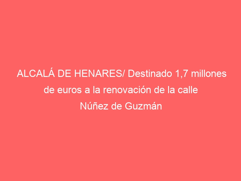 ALCALÁ DE HENARES/ Destinado 1,7 millones de euros a la renovación de la calle Núñez de Guzmán