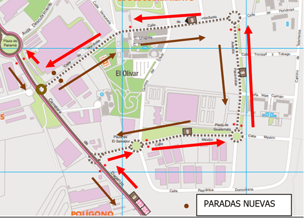 El Ayuntamiento de Alcalá de Henares junto con el Consorcio Regional de Transportes incorpora novedades en la línea 9 de autobuses. A partir del lunes 19 de febrero, a su paso por El Olivar, la línea 9 cambia de itinerario e incorpora tres nuevas paradas en la calle Honduras. La nueva rotonda de conexión de la calle Honduras con la Carretera de Daganzo permite simplificar el recorrido de los autobuses urbanos en el barrio.