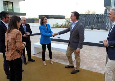 Las Sedas albergará más de 2.500 viviendas respetuosas con el medioambiente. Buen ejemplo de ello es el residencial Ácea Las Sedas de AEDAS Homes, cuyas viviendas, como pudo comprobar la alcaldesa durante la visita, entre otras medidas sostenibles cuentan con suelo radiante y refrescante, lo que se traduce en un alto confort térmico. Además, cerca de un tercio de los 300.000 m2 que componen la superficie de este nuevo barrio están destinados a grandes zonas verdes con más de 2.000 árboles.