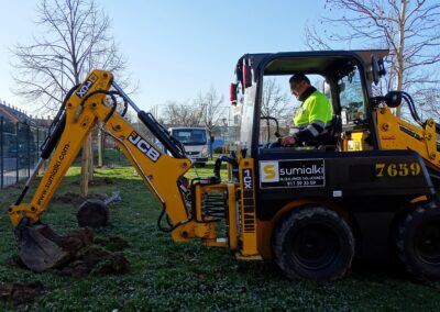 En estos días se están llevando a cabo nuevas plantaciones en el distrito V, en el barrio de El Ensanche, concretamente en el entorno de la zona deportiva, con entradas por calles Gonzalo Torrente Ballester y Gabriela Mistral.