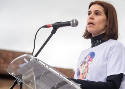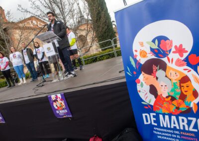 Tras la lectura de la declaración institucional por parte de Santiago Alonso, ha tomado la palabra la alcaldesa. Piquet ha indicado que “este evento ya es una tradición en Alcalá de Henares en torno al 8 de marzo para testimoniar de manera festiva pero simbólica nuestra reivindicación de la igualdad entre mujeres y hombres”. La alcaldesa ha asegurado que “es imprescindible saber de dónde venimos y recordar a quiénes conquistaron los avances que hoy disfrutamos, como inspiración para trabajar por los retos que tenemos aquí y ahora: lograr un acceso digno al empleo, acabar con la brecha salarial en lo que respecta a la maternidad, buscar la verdadera conciliación laboral y familiar para mujeres y hombres, o erradicar cualquier tipo de violencia”.