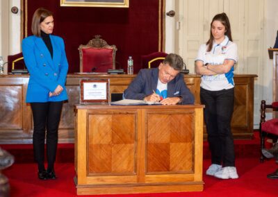 Tras las palabras de Javier Pérez, presidente del Club Patín Alcalá Hockey, y Nerea Blanco, capitana del equipo, la alcaldesa ha tomado la palabra para dar la enhorabuena al equipo alcalaíno. “Este título nacional es un premio más que merecido para la labor de un club como el vuestro que lleva cerca de medio siglo de andadura en nuestra ciudad, defendiendo y promocionando un deporte que pudiera parecer minoritario, pero no lo es, y con jugadores y aficionados muy comprometidos y apasionados”.