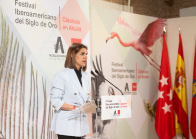 Con presencia también del director general de Cultura e Industrias Creativas, Gonzalo Cabrera, además de otros representantes del Gobierno regional, del equipo de Gobierno complutense y de su Corporación Municipal, la presidenta Ayuso ha destacado en el acto de presentación el vínculo con Iberoamérica del festival, una apuesta “valiente y certera” que emprendió el consejero De Paco en su etapa como director de la muestra alcalaína. “Frente al teatro clásico, todos los iberoamericanos somos el mismo público” a partir “del milagro cotidiano de la lengua que compartimos 600 millones de personas”, ha indicado Ayuso, que ha subrayado también cómo “el teatro del Siglo de Oro nos unía y nos une” y brilla de manera especial en una ciudad como Alcalá, “un referente cultural clave para la Comunidad de Madrid y para España, no solo por Cervantes sino también por la fuerza y la convicción que desprende”.