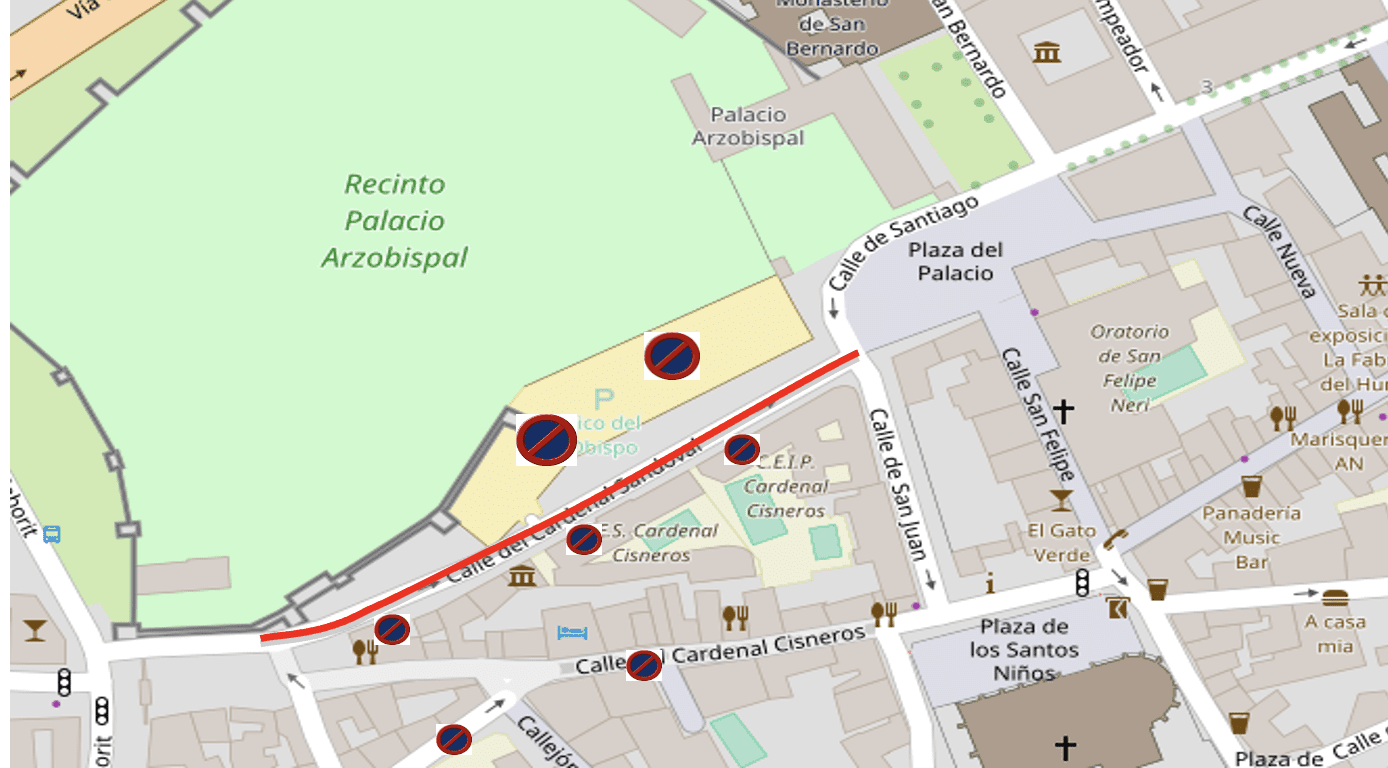 Por ello, se recomienda evitar en la medida de lo posible el uso del vehículo privado, sobre todo en los accesos al centro histórico, y evitar el estacionamiento de sus turismos en las calles afectadas por la instalación del