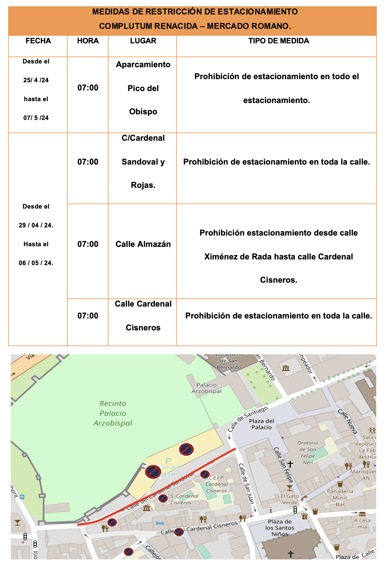 Medidas especiales de circulación y estacionamiento durante Complutum renacida – Mercado Romano.