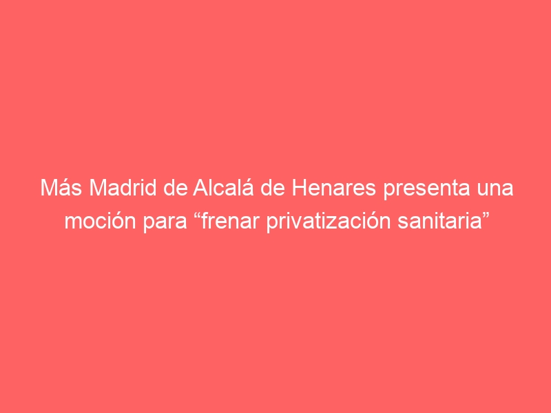 Más Madrid de Alcalá de Henares presenta una moción para “frenar privatización sanitaria”