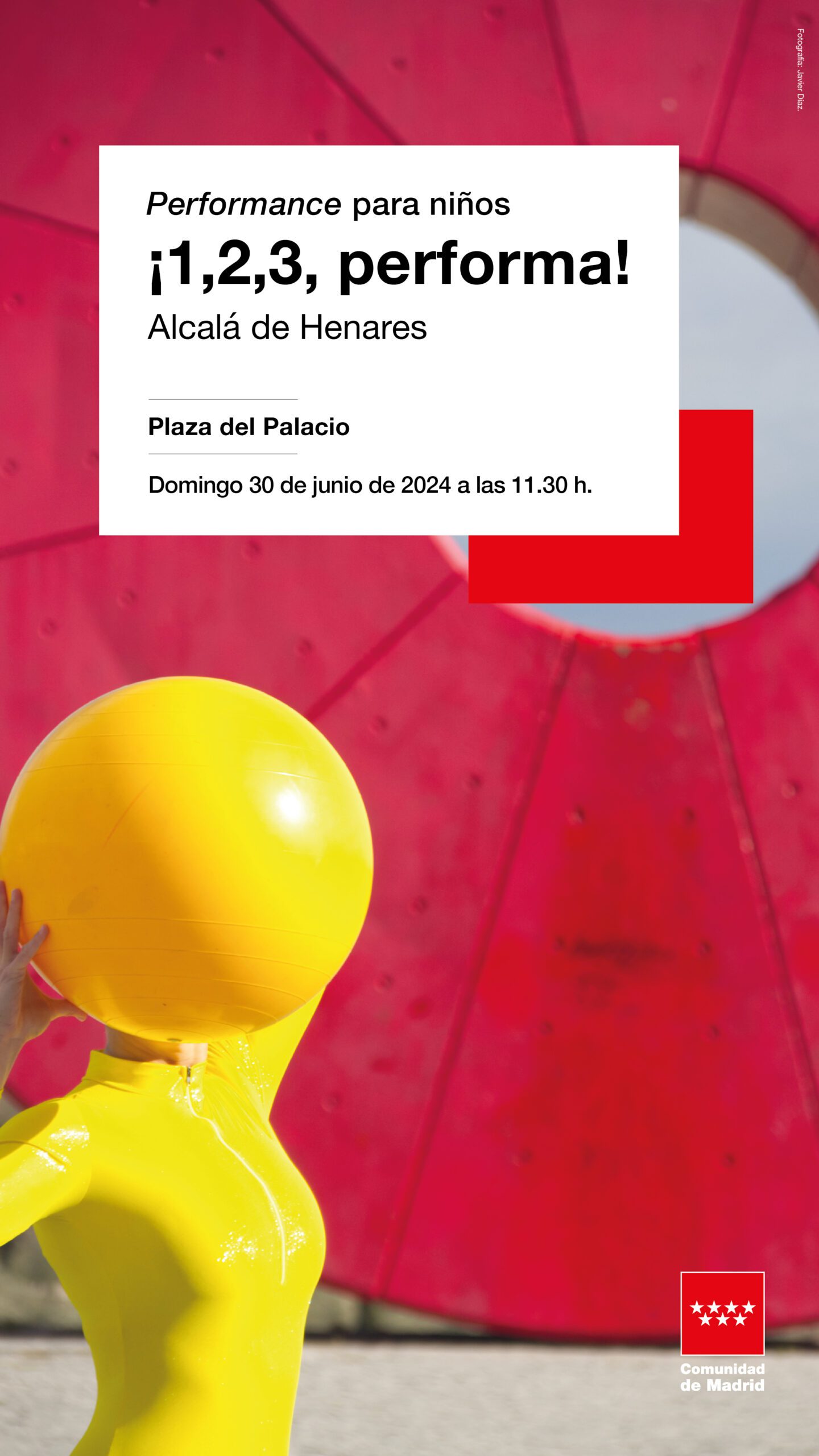 La Plaza de Palacio de Alcalá de Henares acogerá el próximo domingo, 30 de junio, de la mano de la Comunidad de Madrid, una propuesta de arte vivo para público infantil y familiar, denominada ¡1, 2, 3… PERFORMA! Se trata de explorar el arte a través del juego y la creatividad y tendrá lugar de 11:30 a 13:00 horas. La participación es libre y no requiere inscripción previa.