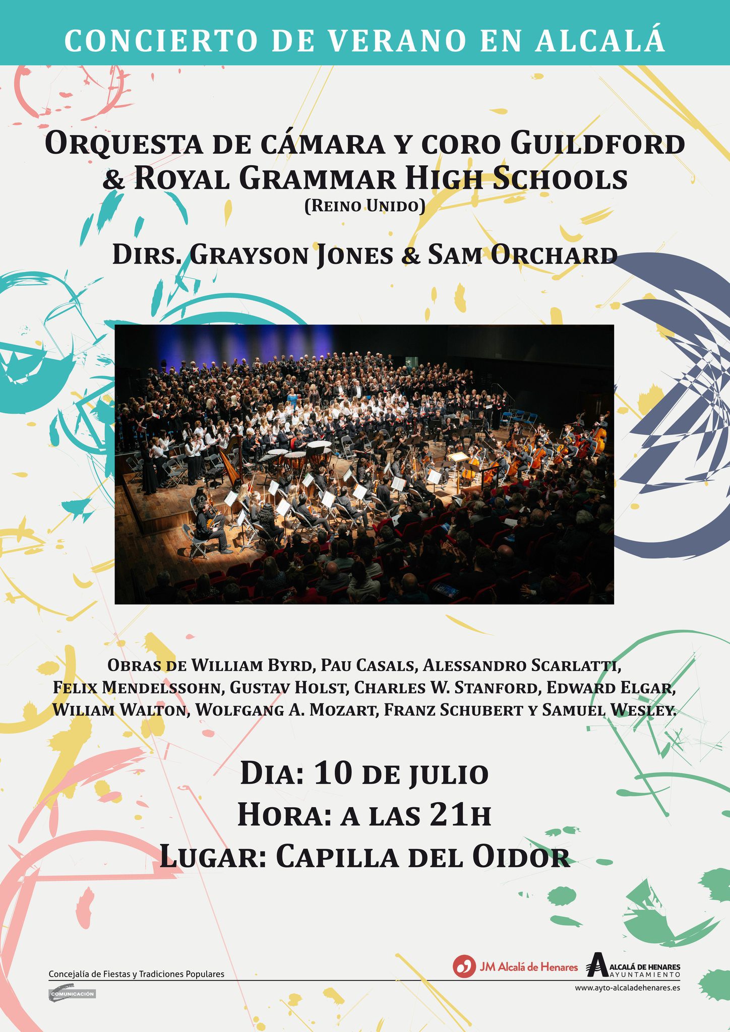 Este miércoles 10 de julio a las 21:00 en Las Ruinas de Santa María de la Plaza de Cervantes de Alcalá de Henares tendrá lugar los ‘Clásicos en Verano’, de la mano de la Joven Orquesta de Cámara y Coro de la Guildford & Royal Grammar High Schools en un concierto gratuito organizado por la Concejalía de Fiestas y Tradiciones Populares, con la colaboración de la Asociación sin ánimo de lucro Juventudes Musicales de Alcalá.