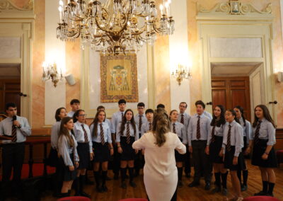 En esta actividad participan alumnos de distintas edades, desde los 12 hasta los 18 años; está constituida como una formación complementaria dentro del horario escolar, teniendo una prolongación en los ensayos los jueves por la tarde. Todo el alumnado del colegio puede formar parte del coro tras ser evaluado en una prueba de acceso.