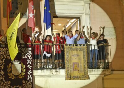 La alcaldesa, Judith Piquet, el concejal de Fiestas y Tradiciones Populares, Antonio Saldaña, así como el resto de los concejales de la corporación les han acompañado en los balcones de la Casa Consistorial. Piquet ha dado las gracias a las peñas “por todo lo que nos dais”, ha deseado a todos los alcalaínos unas “tranquilas y felices ferias” y les ha animado “a disfrutar con alegría”.