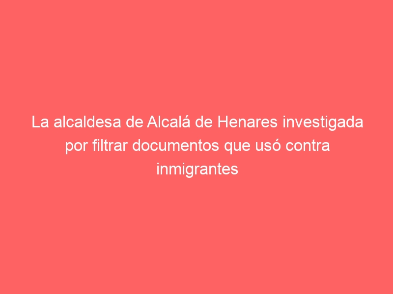 La alcaldesa de Alcalá de Henares investigada por filtrar documentos que usó contra inmigrantes
