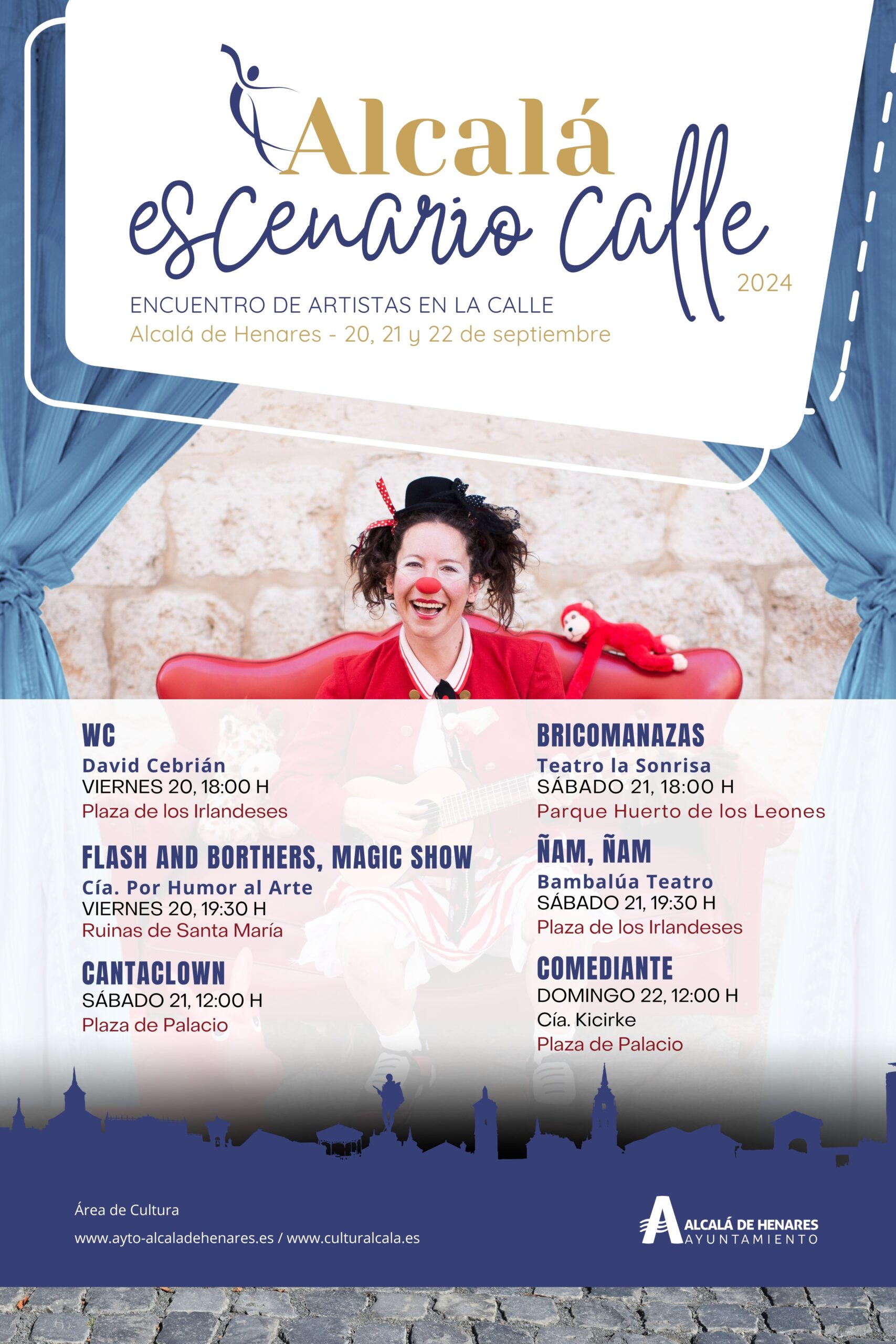 El casco histórico de Alcalá de Henares vuelve a convertirse un año más en el escenario al aire libre ideal para acoger diferentes espectáculos de calle que combinarán el teatro, la música y el circo. Durante todo un fin de semana, Alcalá sacará la cultura a algunos de sus espacios más emblemáticos, para disfrute gratuito de toda la ciudanía.