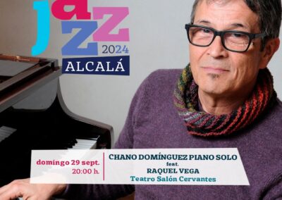 Por último, el domingo, será el turno de Chano Domínguez, que es sin duda uno de los más grandes pianistas de eso que se ha llamado flamenco jazz. Ha colaborado con grandes figuras músicos como Paco de Lucía, Wynton Marsalis y Herbie Hancock, pero Chano ha dejado una huella imborrable en la historia del flamenco jazz. Su talento aclamado ha sido reconocido internacionalmente y su música ha sido interpretada por orquestas y conjuntos prestigiosos en todo el mundo. Chano Domínguez muestra toda su paleta sonora a solas con su piano y con la participación como artista invitada de la gran armonicista Raquel Vega.
