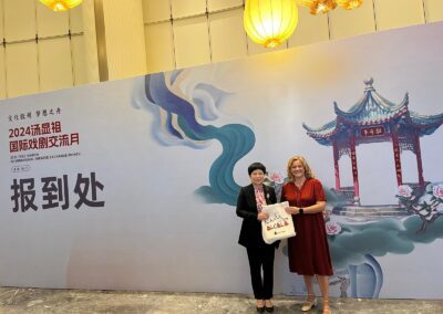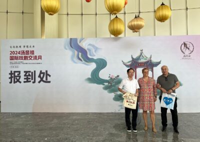 La delegación de la ciudad complutense, se halla en la ciudad de Fuzhóu asistiendo al Festival Internacional de Teatro Tang Xianzu, invitada por el gobierno municipal de esta localidad china. Este festival anual congrega a delegaciones de países asiáticos, africanos o europeos entre los que destaca la del Reino Unido ya que la ciudad natal de William Shakespeare, Stratford upon Avon, está hermanada con Fuzhóu. Se da la circunstancia histórica de que tres grandes figuras de la literatura universal de los siglos XVI y XVII murieron en el mismo año, 1616 dejando al mundo un legado inmaterial y atemporal con un fuerte calado en las culturas de sus respectivos países y que exportaron al exterior.