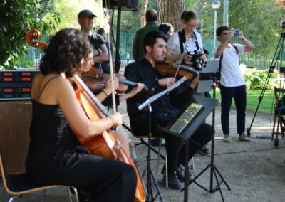 El acto, en el que también han estado presentes el teniente de alcalde Víctor Manuel Acosta, el concejal Teófilo Lozano, así como otros miembros de la Corporación, ha estado amenizado por la actuación de la Orquesta Filarmónica Cervantina de las 25 Villas, la representación del Teatro Independiente Alcalaíno (TIA), así como la participación de Trinidad Romero. Durante el acto, además, se ha descubierto una placa que desde hoy decora este espacio del parque con el nombre de ‘Plaza de los Centenarios’.