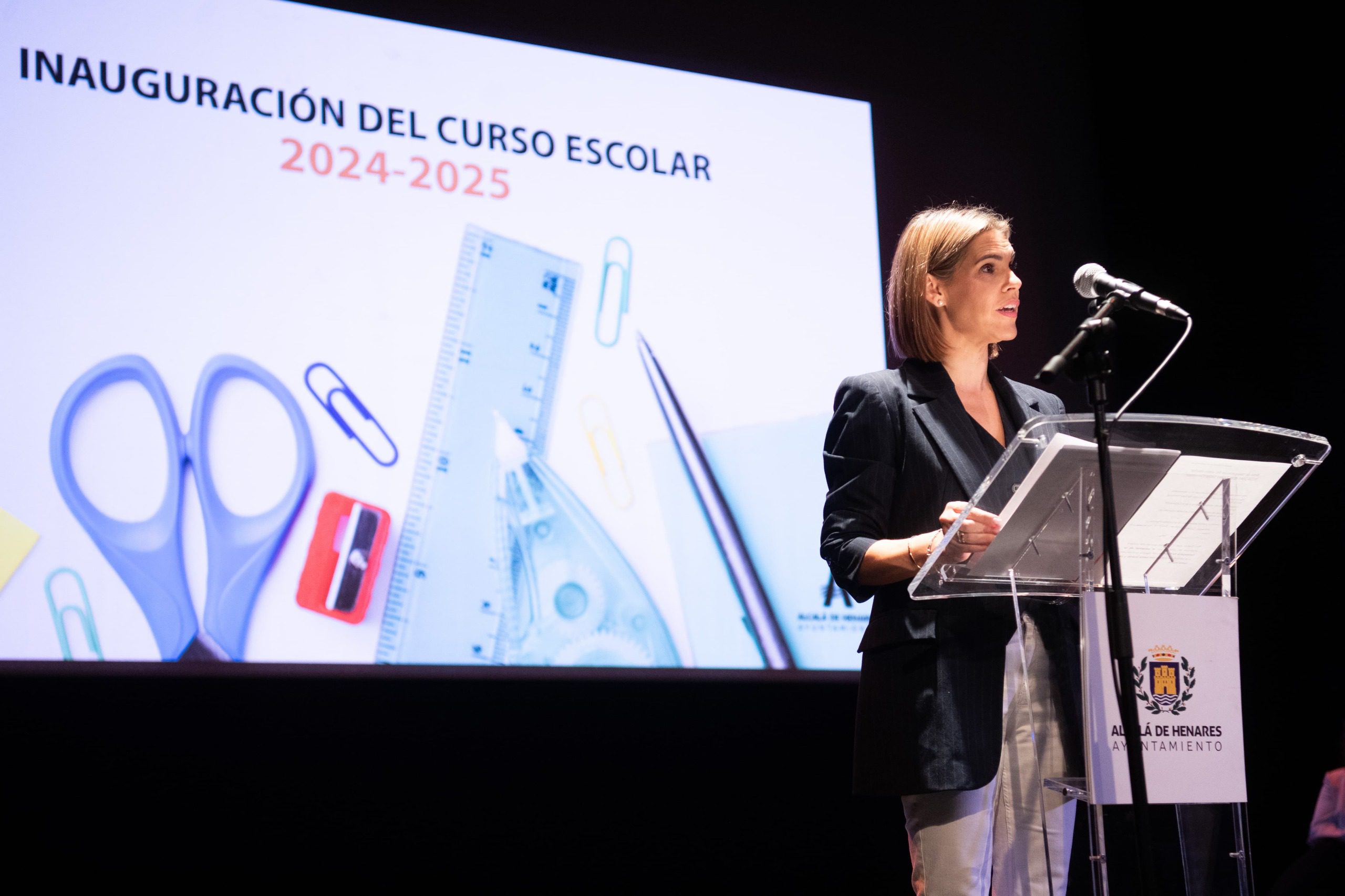 La alcaldesa de Alcalá de Henares, Judith Piquet, el director del Área Territorial Madrid Este, Marcos Rafael Moreno Sánchez, y la concejala de Educación, Lola López, han presidido hoy el acto de inauguración oficial de apertura del Curso Escolar 2024/2025 de Alcalá de Henares que ha tenido lugar en el Teatro Salón Cervantes.