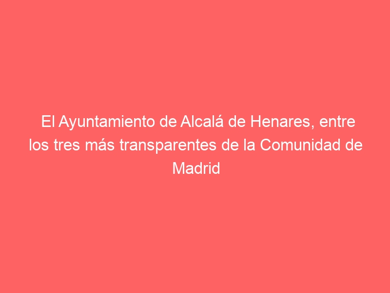La entrada El Ayuntamiento de Alcalá de Henares, entre los tres más transparentes de la Comunidad de Madrid y quinto de España se publicó primero en Ayuntamiento de Alcalá de Henares.