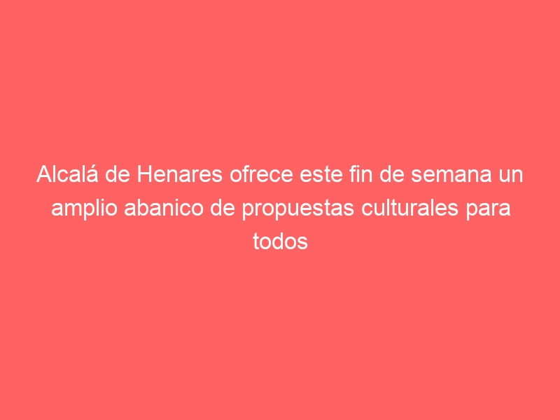 La entrada Alcalá de Henares ofrece este fin de semana un amplio abanico de propuestas culturales para todos los públicos se publicó primero en Ayuntamiento de Alcalá de Henares.