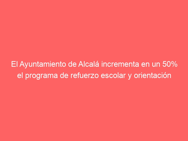 La entrada El Ayuntamiento de Alcalá incrementa en un 50% el programa de refuerzo escolar y orientación educativa se publicó primero en Ayuntamiento de Alcalá de Henares.