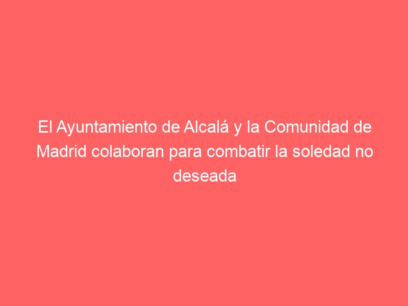 La entrada El Ayuntamiento de Alcalá y la Comunidad de Madrid colaboran para combatir la soledad no deseada se publicó primero en Ayuntamiento de Alcalá de Henares.