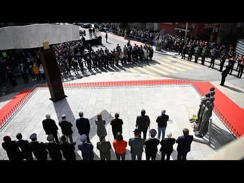 La plaza junto a la estación central de Cercanías de Alcalá de Henares ha sido escenario este miércoles de un emotivo acto de recuerdo por la conmemoración del Día Europeo en Memoria de las Víctimas del Terrorismo y de Homenaje a las Víctimas del 11M, cuando se cumple el vigésimo segundo aniversario de este atentado terrorista que segó la vida de 192 personas, 27 de ellas de nuestra ciudad.